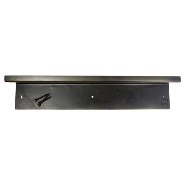 A steel, floating wall shelf designed to store all sorts of home accessories, from books to kitchen utensils. The elevated edge keeps your belongings in place. 3 blackened bolts included.